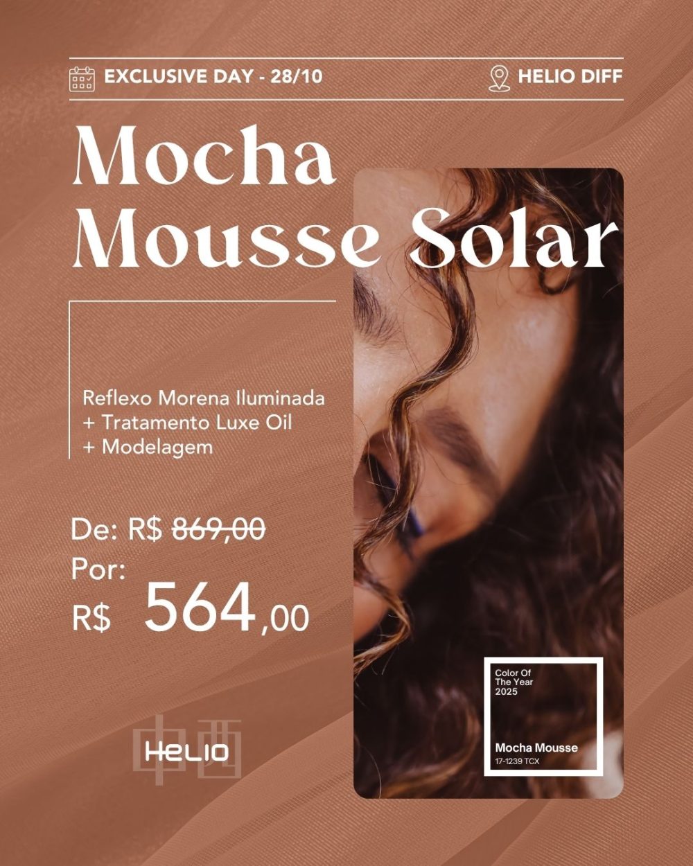 Descubra um brilho que vai além da cor: o Mocha Mousse Solar é a tradução do verão em um ritual exclusivo que combina nuances quentes, douradas e envolventes, criando a sofisticação natural do look morena iluminada.