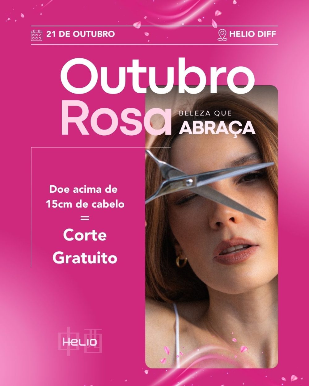 🎀 Corte Solidário No dia 21 de outubro, doe 15cm de cabelo e ganhe um corte gratuito feito por nossos profissionais.